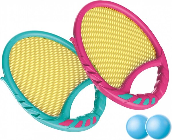De set bestaat uit 2 peddels/poten met een kleefoppervlak en 2 ballen die gemakkelijk blijven kleven wanneer je ze vangt. Dit maakt het spel toegankelijk voor jongere kinderen en uitdagend genoeg voor oudere spelers. Het doel? Gooi de bal naar je tegenstander en vang hem weer terug met je peddel! De eenvoud van de regels zorgt ervoor dat iedereen kan meedoen, ongeacht leeftijd of ervaring.